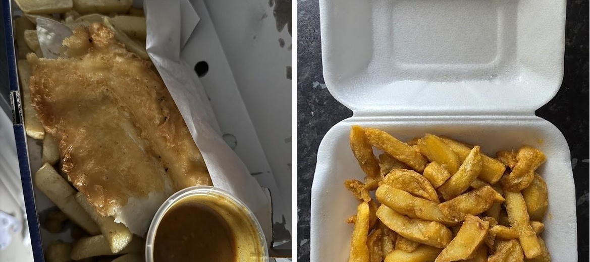 Called in for Fish and Chips decent portion crispy and fluffy chips not to greasy and the curry sauce has a sweet and tangy taste to it would get again not badly priced either